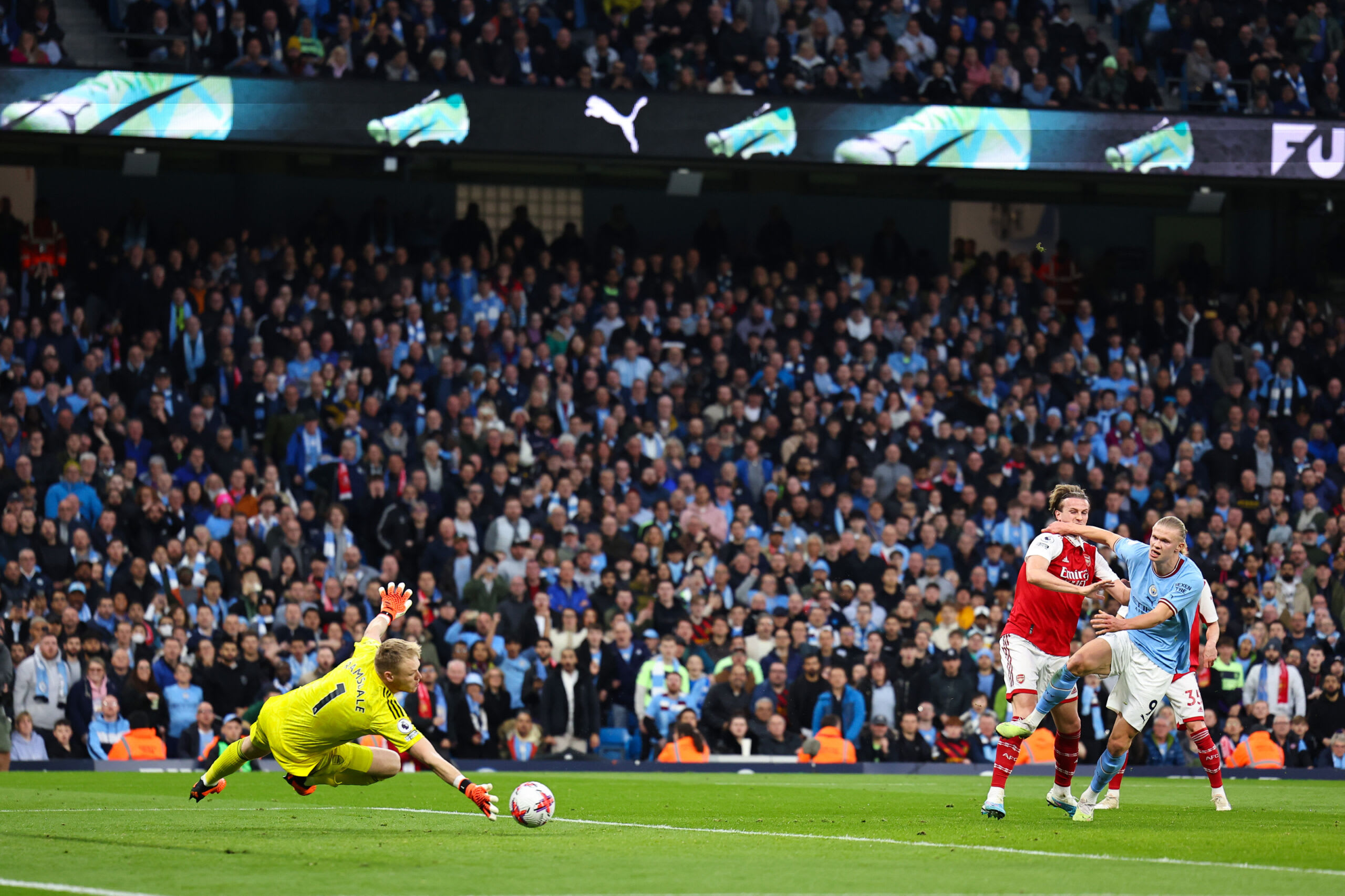 Ramsdale denied Haaland again at the start of the second half, but there was nothing he could do to prevent De Bruyne from scoring City’s third soon after.