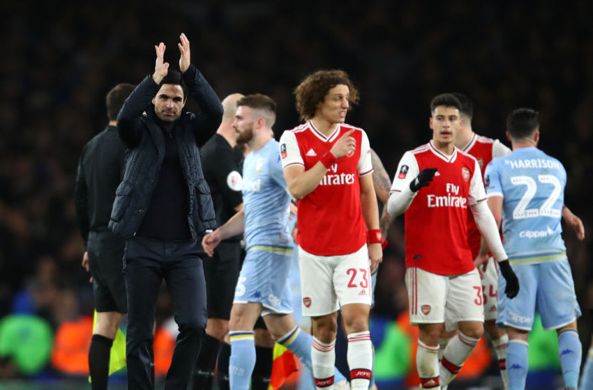 LONDON, ENGLAND – JANUARY 06: Mikel Arteta, Manager of Arsenal (L) applauds the fans following his side’s victory during the FA Cup Third Round match between Arsenal FC and Leeds United at the Emirates Stadium on January 06, 2020 in London, England. (Photo by Julian Finney/Getty Images)