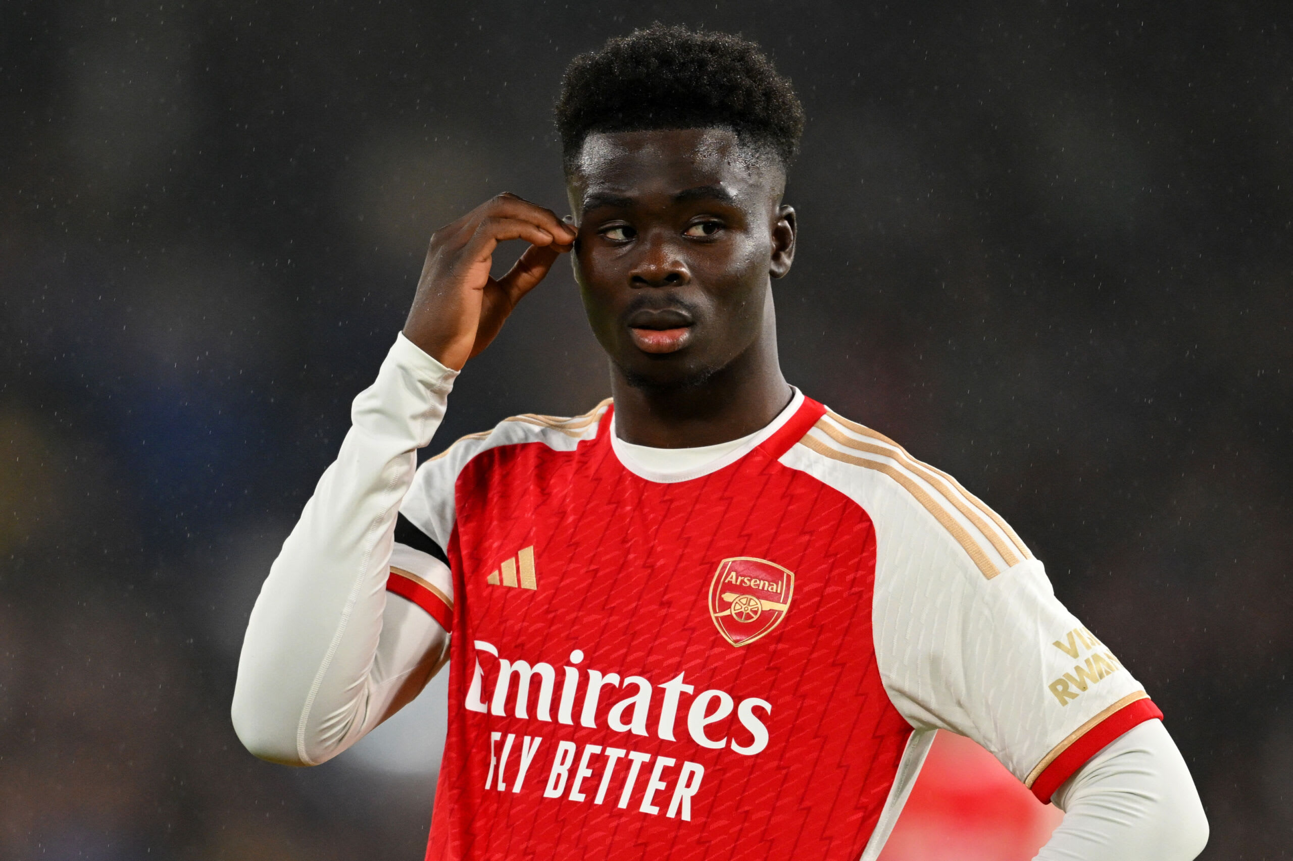 LONDON, ENGLAND – OCTOBER 21: Bukayo Saka of Arsenal looks dejected during the Premier League match between Chelsea FC and Arsenal FC at Stamford Bridge on October 21, 2023 in London, England. (Photo by Michael Regan/Getty Images)