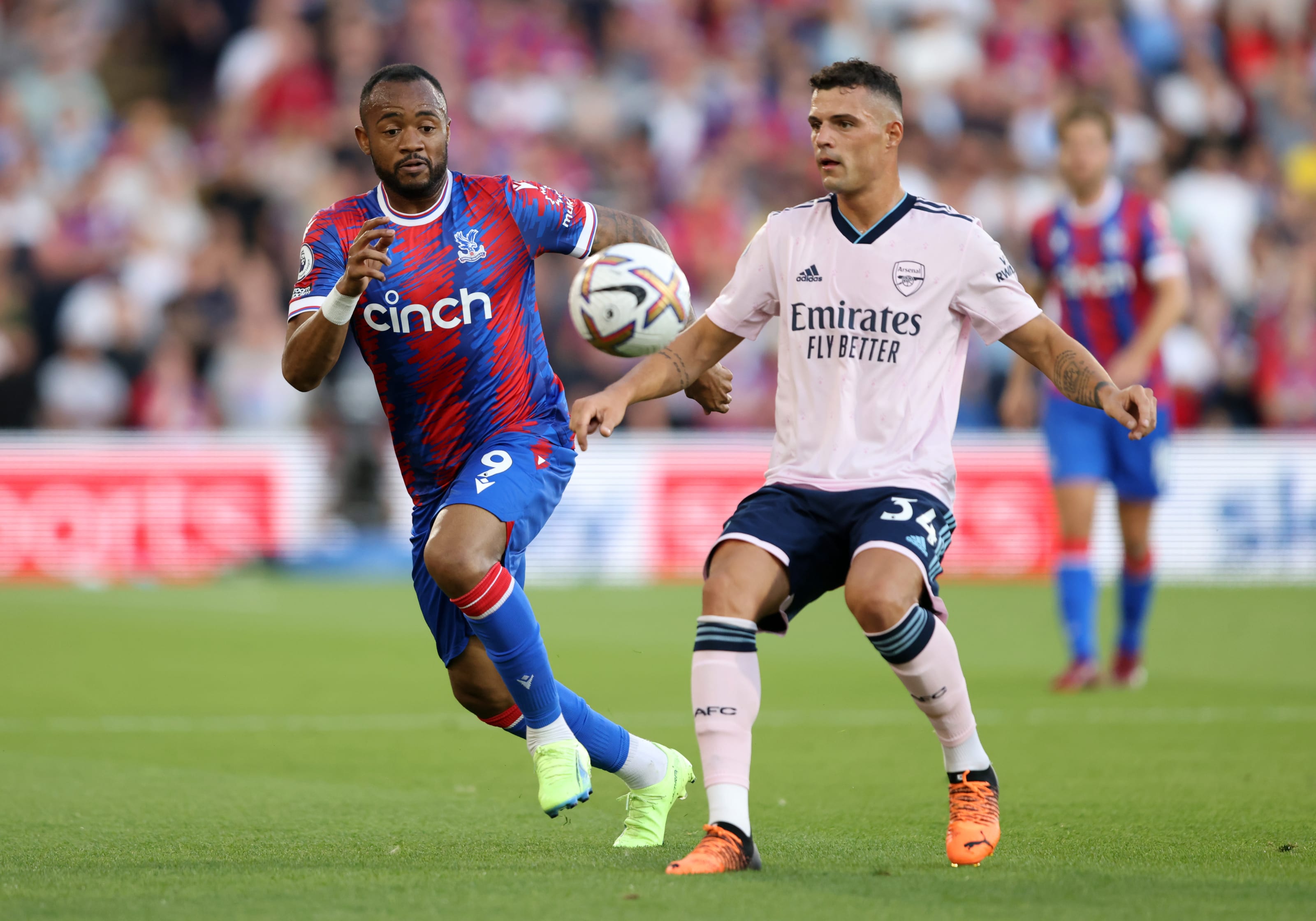 Arsenal's Brazilian midfielder Gabriel Martinelli (C) celebrates after scoring the opening goal in the English Premier League football match between Crystal Palace and Arsenal at Selhurst Park in south London on August 5, 2022. - RESTRICTED TO EDITORIAL USE. No use with unauthorized audio, video, data, fixture lists, club/league logos or 'live' services. Online in-match use limited to 120 images. An additional 40 images may be used in extra time. No video emulation. Social media in-match use limited to 120 images. An additional 40 images may be used in extra time. No use in betting publications, games or single club/league/player publications. (Photo by JUSTIN TALLIS / AFP) / RESTRICTED TO EDITORIAL USE. No use with unauthorized audio, video, data, fixture lists, club/league logos or 'live' services. Online in-match use limited to 120 images. An additional 40 images may be used in extra time. No video emulation. Social media in-match use limited to 120 images. An additional 40 images may be used in extra time. No use in betting publications, games or single club/league/player publications. / RESTRICTED TO EDITORIAL USE. No use with unauthorized audio, video, data, fixture lists, club/league logos or 'live' services. Online in-match use limited to 120 images. An additional 40 images may be used in extra time. No video emulation. Social media in-match use limited to 120 images. An additional 40 images may be used in extra time. No use in betting publications, games or single club/league/player publications. (Photo by JUSTIN TALLIS/AFP via Getty Images)