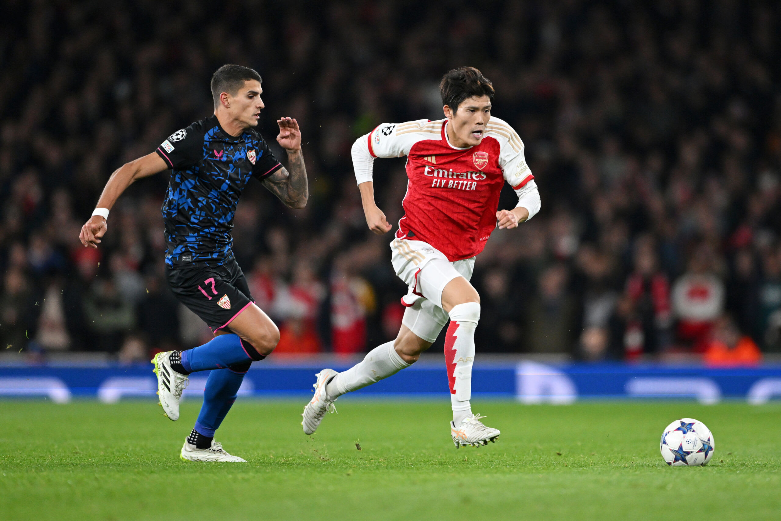 Takehiro Tomiyasu was withdrawn at half-time. (Photo by Shaun Botterill/Getty Images)
