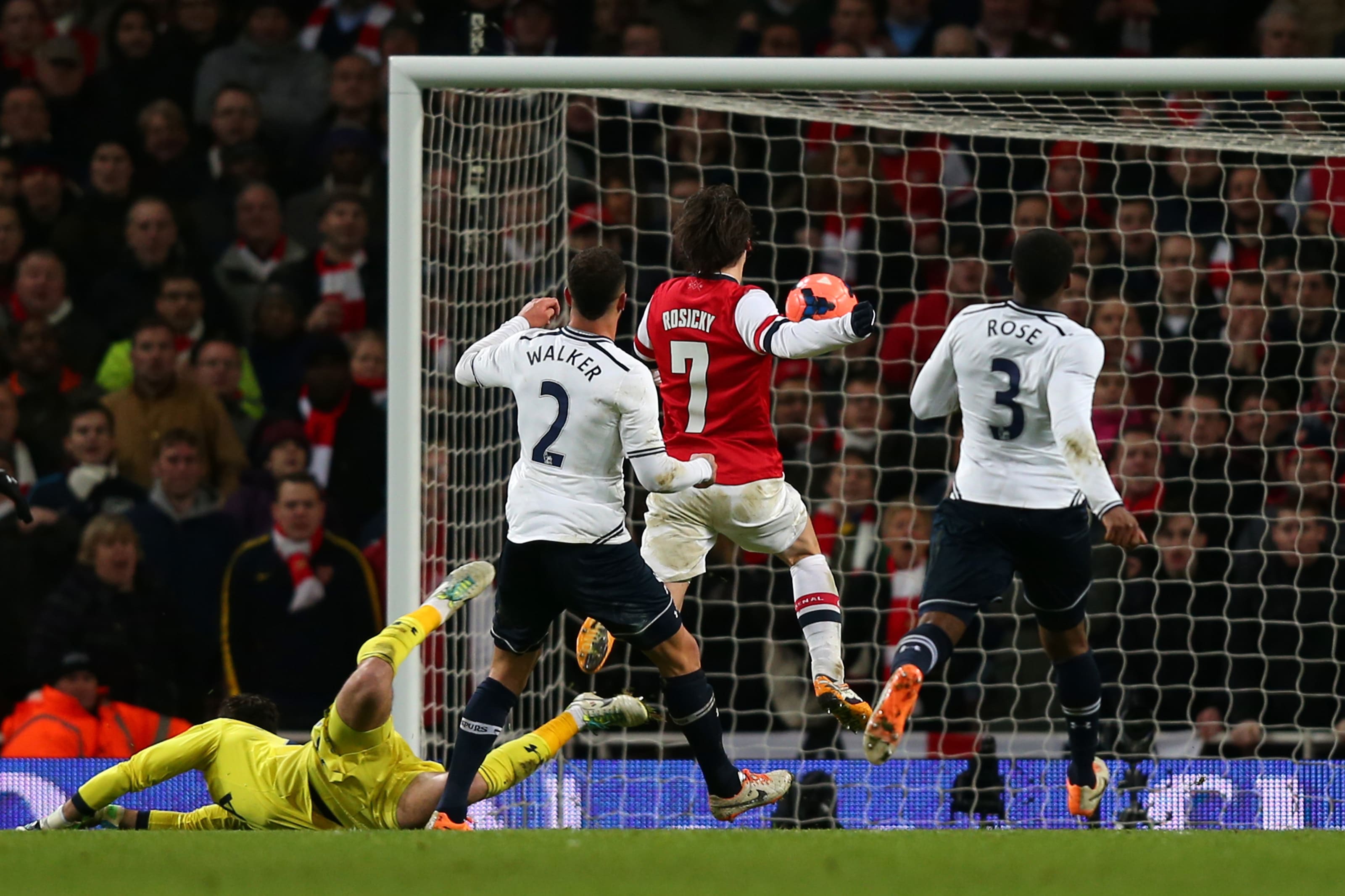 After dispossessing Danny Rose on the halfway line, Rosicky drove into the Spurs penalty area and produced a delightful little chip over Lloris and into the net. The goal put Arsenal up 2-0 and effectively ended the cup tie.