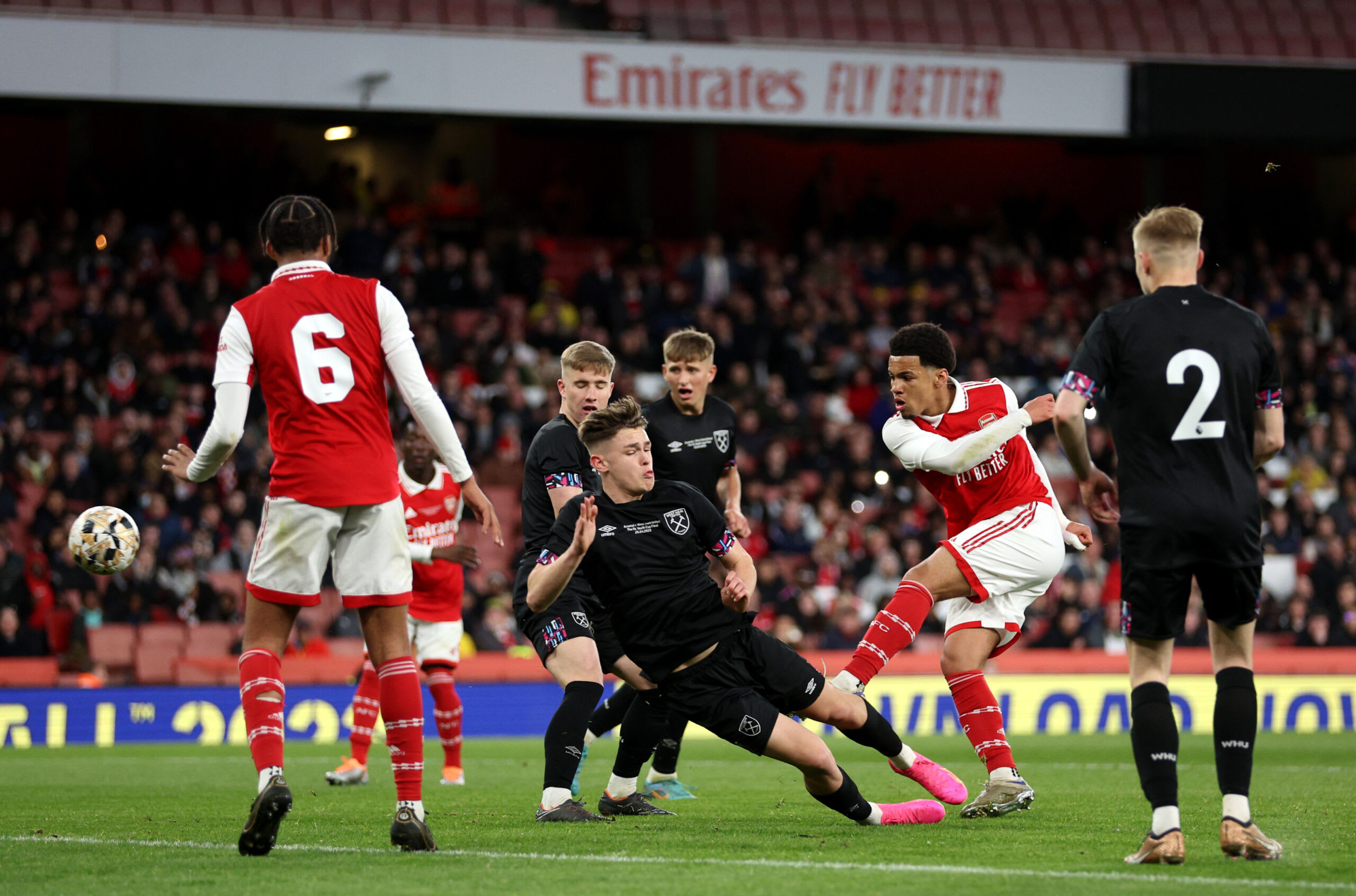Two minutes later and it was 1-2, as a shaky Arsenal were cut open with an inch-perfect cross from Gideon Kodua which was clinically met by Callum Marshall inside the six-yard box to put the Hammers ahead.