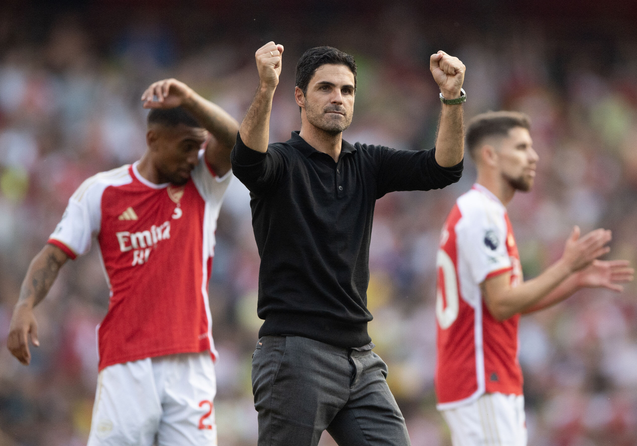 Mikel Arteta celebrates the win over Man Utd. (Photo by Visionhaus/Getty Images)